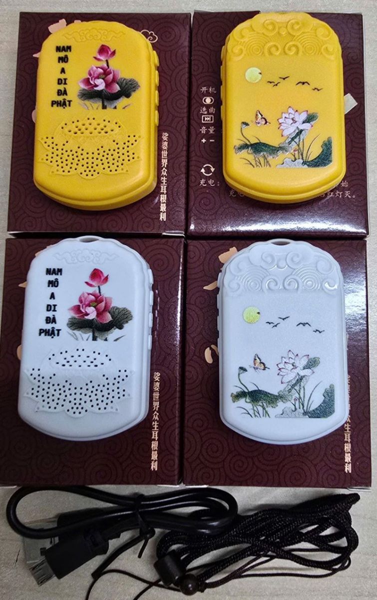 Máy niệm Phật mini 65 bài K96 có hình hoa sen, có thần chú dược sư trị bệnh, có Chú đại bi, niệm Phật,....